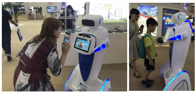 本次展覽會國辰機器人向來自海內外的觀展商展示了智能服務機器人。該款智能服務機器人具有語音互動、自主導航、人臉識別、多媒體展示等實用功能。并且與多家單位建立合作關系,曾多次參與大型活動,如杭州亞運會吉祥物征集啟動儀式、第三屆國際茶葉博覽會等。