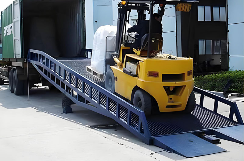 移動登車橋是用于卡車、集裝箱裝卸貨時,叉車從地面行駛至車廂的過渡橋。移動登車橋的可以移動性,可以滿足在不同的場地進(jìn)行裝卸貨作業(yè)。